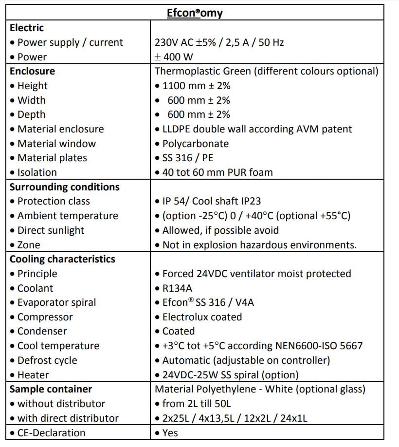 The Efconomy is a well proven permanent waste water sampler for automatic sampling on waste water and industrial applications. The Sampler is designed for the harshest environments and features a patented chemically resistant thermoplastic housing, which allows for superb cooling performance, along with ensuring robustness in all environmental conditions. The Efconomy is supplied with its jazz controller which allows for a range of different sampling techniques including time, flow and event based sampling options. In standard form the Efconomy model is offered with a single bottle configuration, with multiple bottle configurations available including -